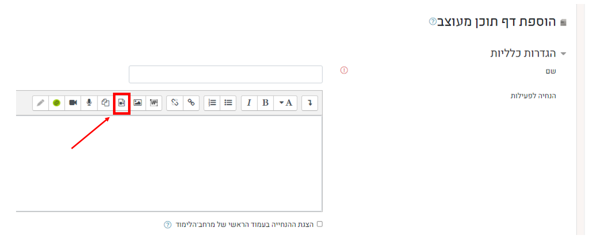 כפתור המדיה נמצא בסרגל הכלים של תיבת התוכן וכדיי להוסיף מדיה יש ללחוץ עליו: